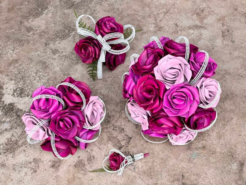 Make a statement with Harakeke flax large wedding bouquet for the bride & bridesmaids. Forever flowers.